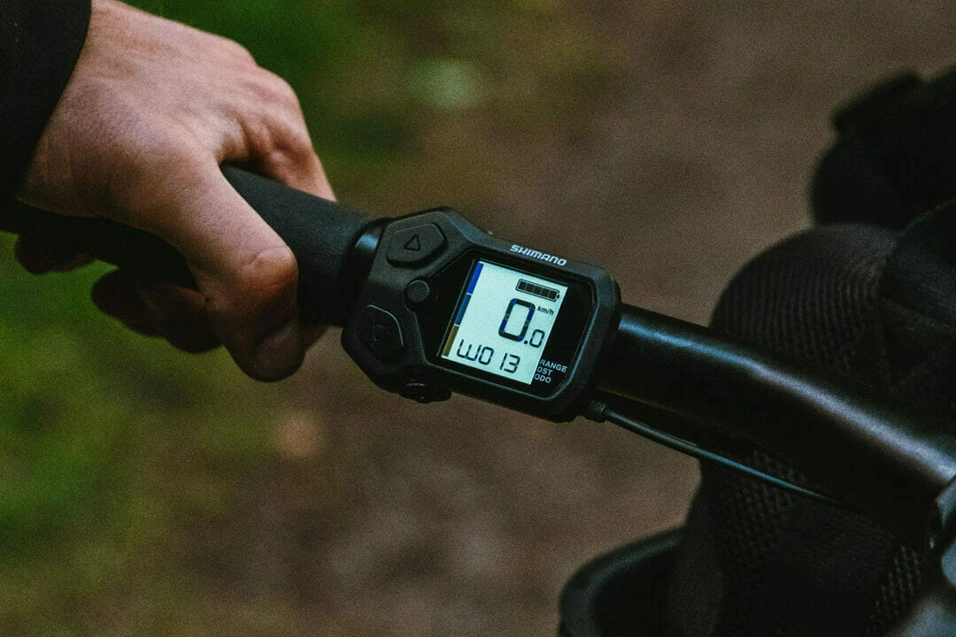 - Alternativ 1: Snygg, lättläst Shimano-display inklusive hastighet, avstånd, restid, klocka, växel, uppskattat intervall, batteriindikator, etc.
