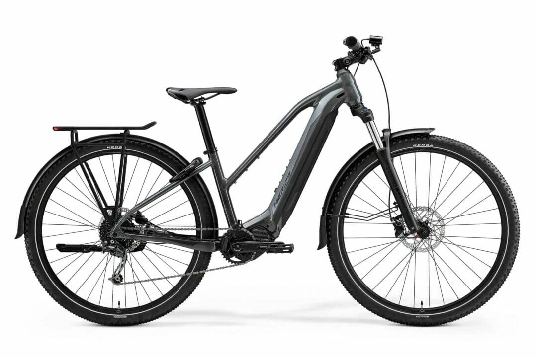 MERIDA eBIG.TOUR EQ kombinerar det bästa av två världar och nu är den tillbaka i vårt sortiment – den ser ut som en mountainbike men är en riktigt bra trekkingcykel. eBIG.TOUR EQ har ram som är baserad på eBIG.NINE, dämpad gaffel och breda 29” MTB-däck – helt enkelt en fantastiskt bekväm trekkingcykel. Den levereras fullt utrustad med stänkskärmar, pakethållare och lysen – allt du normalt förväntar dig av en trekkingcykel eller hybrid. Det är mycket enkelt komma upp på och gå av från cykeln tack vare den fantastiska stå-över-höjden med överrör som lutar brant nedåt.