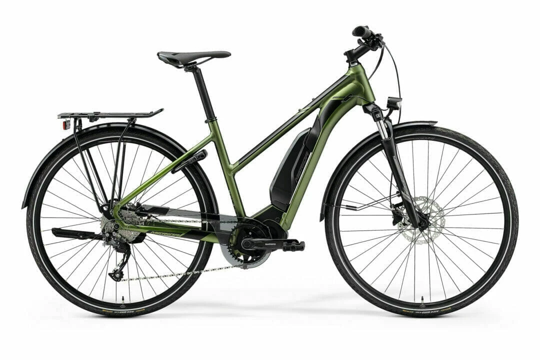 Populära Merida eSPRESSO är den perfekta partnern för ett liv i stan. Skärmar, lampa, pakethållare och cykelstöd som gör livet lite enklare matchas med navväxlar för en cykel som alltid är klar for det du önskar att göra. Välj mellan olika ramar med högt eller lågt insteg, batterier på 750 Wh, 630 Wh eller 504 Wh som är integrerat eller semi-integrerat i ramen. Alla cyklar använder sig av kraftfulla och pålitliga Shimano Steps-motorer. Dämpargaffel gör livet bakom styret mer komfortabelt och hjulen rullar på breda 50mm däck som ökar komfort avsevärt och har reflexer på däcksidan som ökar din synlighet i trafiken. Lättviktsram som är stark nog samt har en totalvikt på hela 150 kg vilket gör att du kan få med dig allt du behöver.