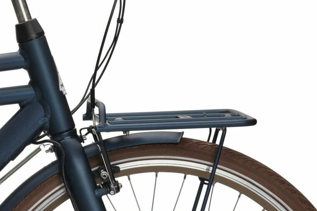 - Denna cykel kommer med skärmar, stöd, godkänt ramlås belysning, sju växlar, handbroms och fotbroms.