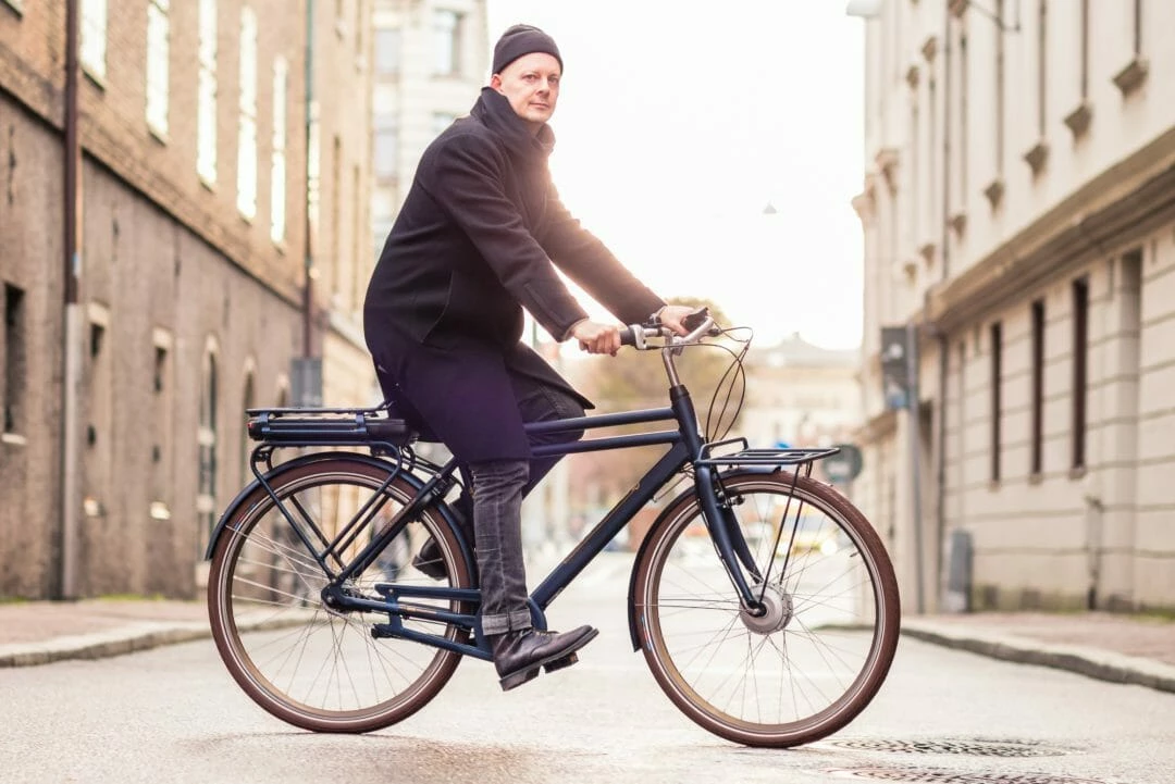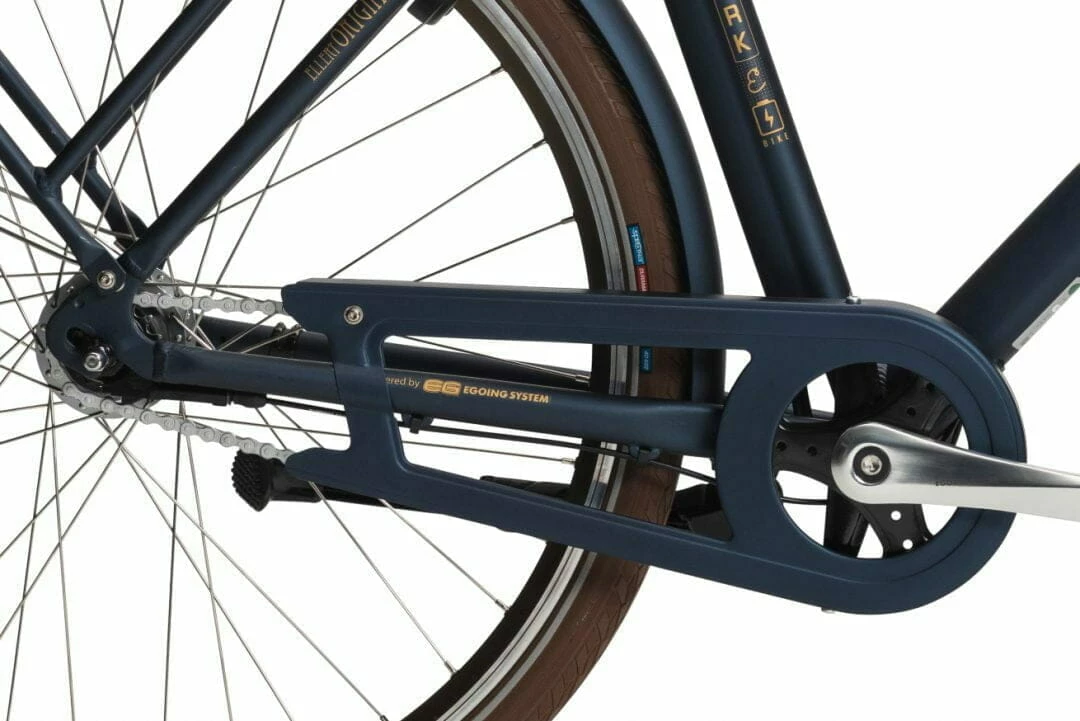 Du sitter skönt i den mjuka komfortsadeln och hela ekipaget andas snygg retrolook. Framtill har denna elcykel en pakethållare som ger cykeln både visuell karaktär och en praktisk funktion, eftersom du med det smarta AVS-klicksystemet enkelt kan sätta på och ta av korgar och väskor. Ramens matta lack än nästan sammetslik i sin finish och matchas med guldfärgade ekrar och dekor. Med 250w elmotor i framhjulet tar du dig fram snabbt utan större ansträngning. Karl är enkel att manövrera; välj effektläge och trampa, så sköter det intelligenta systemet resten.