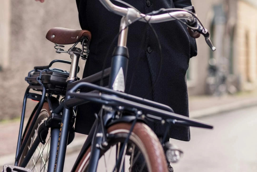 - Displayen på styret håller dig uppdaterad och där kan du enkelt välja assistansnivå. Cykelns batteri sitter stabilt i pakethållaren.