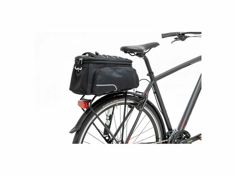 Trunkbag Sport är utrustad med regnskydd och reflektorband på sidorna. Huvudfacket kan förlängas med dragkedja. Avtagbar axelrem medföljer.