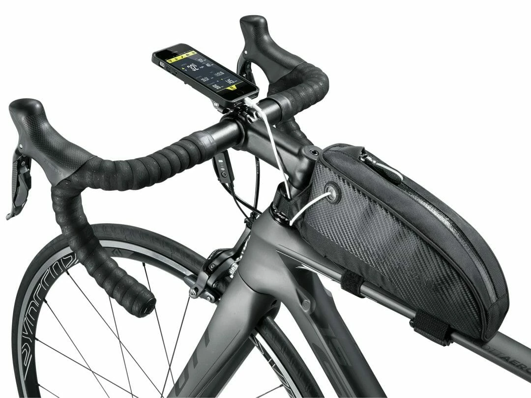 Väska för montering i triangeln på ramen. Väskan har en dragkedja på varje sida för enkel åtkomst från antingen höger eller vänster. Väskan är tillverkad i lätt, vattentåligt och hållbart material.Volym: 3 liter | Material: polyeten, nylon | Remmar med kardborreband | Passar: ø45 – ø66 mm (ovanrör), ø28 – ø60 mm (sadelrör), ø38 – ø70 mm (diagonalrör) | Mått: 37,5 x 12 x 6 cm | Vikt: 169 gram