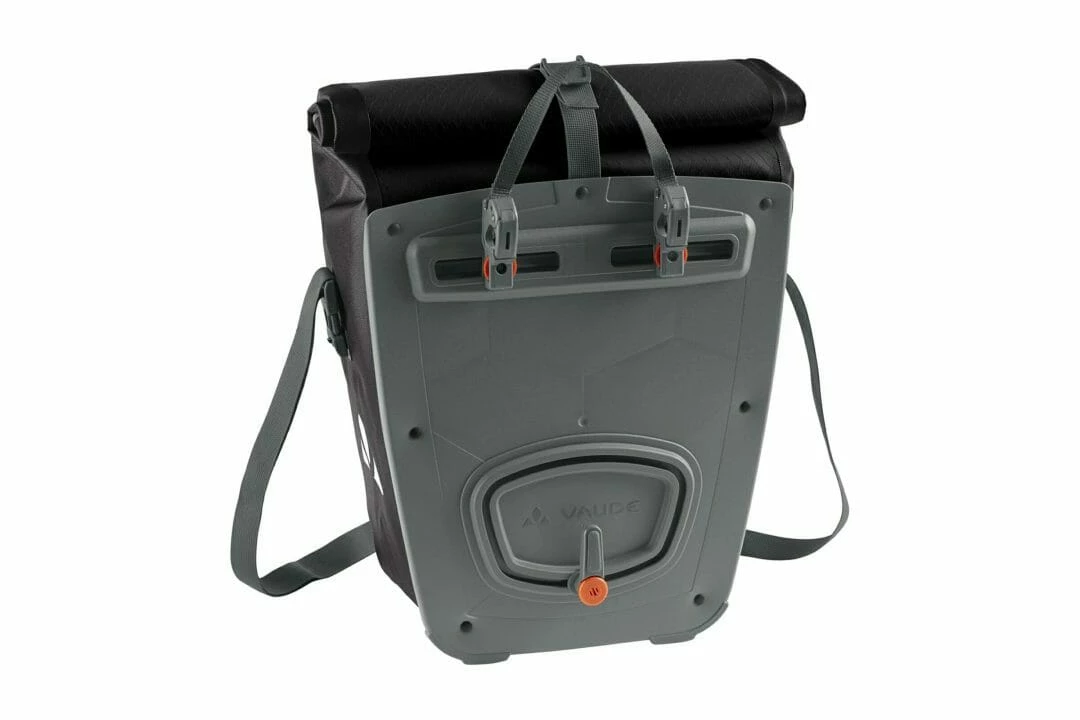 Vaude Aqua är mycket populära cykelväskor, faktiskt världens mest sålda! Är 100% vattentäta väska som är klimatneutralt tillverkad vid tyska VAUDE-företagets huvudkontor. Är i slitstarkt, PVC-fritt material och funkar till allt från långväga cykeläventyr till vanlig vardagspendling. Med en rullstängning som gör att du kan anpassa storleken på väskan och försegla den så att den är vattentät. En extra innerficka gör det enkelt att förvara saker separat. Väskan sitter säkert fästa på höger eller vänster sida tack vare QMR 2.0-systemet, som också möjliggör enkel justering och snabb på- och avtagning. Med ett cykellås kan den låsas direkt på QMR-kroken. Med reflekterande element. Den totala volymen är 24 liter. Ingår: en väska (singel). Tillverkas i enlighet med strikta miljövänliga kriterier. VAUDE Green Shape-etiketten står för miljövänliga, funktionella produkter tillverkade av hållbara material.