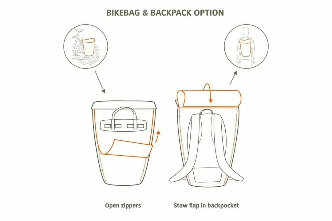 - Supersmart och praktisk väska med fästkrokar för pakethållaren. Zipp-zipp och via en dragkedja trollar du bort krokarna och fram kommer bärremmar och väskan har blivit en snygg ryggsäck.